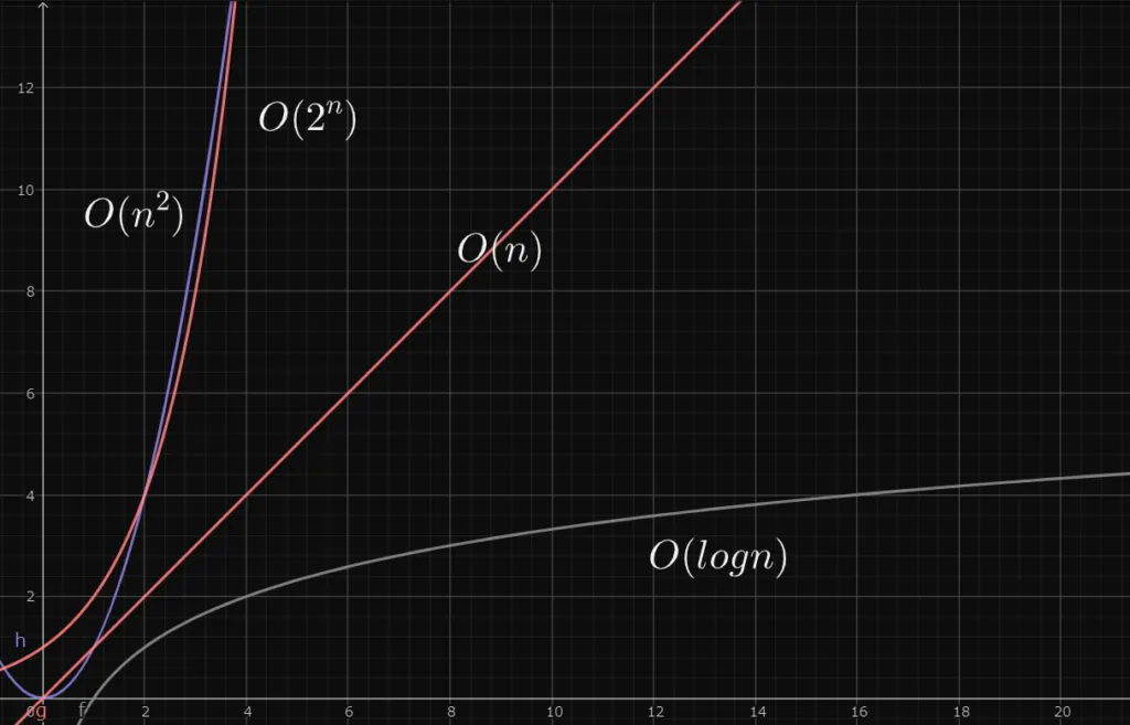 O(1):入力サイズに関係なく、常に一定の時間がかかる。 O(log n):入力サイズの対数に比例する時間がかかる。一般的に効率の良いアルゴリズムとされる。 O(n):入力サイズに比例する時間がかかる。 O(\(n^2\)):入力サイズの二乗に比例する時間がかかる。一般的に効率の悪いアルゴリズムとされる。 O(\(2^n\)):入力サイズの指数関数に比例する時間がかかる。非常に効率が悪く、扱いにくいアルゴリズムとされる。