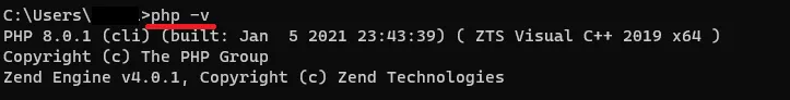 1.Windowsボタンを押して、「コマンド プロンプト」と入力して開いてください。 2.「php -v」と入力してphpのバージョンを確認してください。